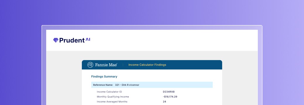 Stop copying, pasting, and re-running income. Prudent AI brings the Fannie Mae Income Calculator directly into your workflow—so income moves forward without friction.